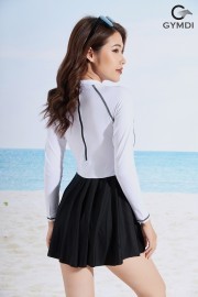 Bộ bơi liền mảnh dài tay chân váy - Phối trắng đen 22021