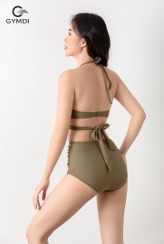 Bikini cạp cao bèo nhún đan dây xanh army 22110