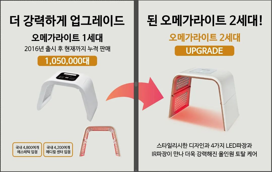 Omega Light là thiết bị sử dụng đèn LED với 4 loại ánh sáng đặc trị: Đỏ, Xanh lá cây, Xanh da trời, Vàng có bước sóng từ 423nm đến 640nm(1nm=0.000001mm) cùng độ xâm nhập dưới da từ 0.5mm đến 6mm giúp phục hồi da dễ dàng, giảm kích ứng và giảm đau, cũng như giải quyết các vấn đề khác.
