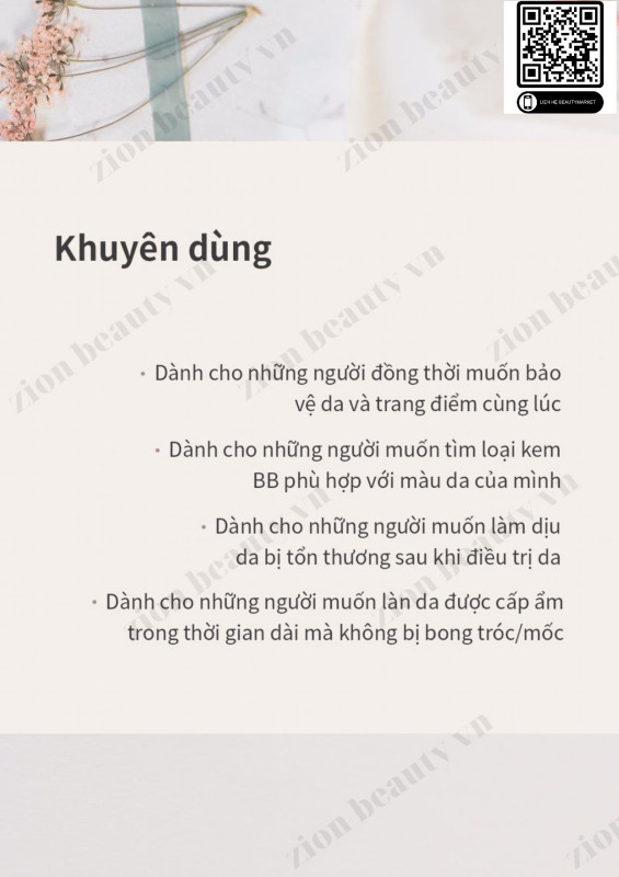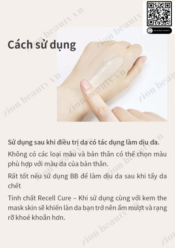 Cách sử dụng: phù hợp với mọi loại da kể cả da nhạy cảm nhất và da đang điều trị, lên tone tự nhiên có thể dung thay lớp makeup