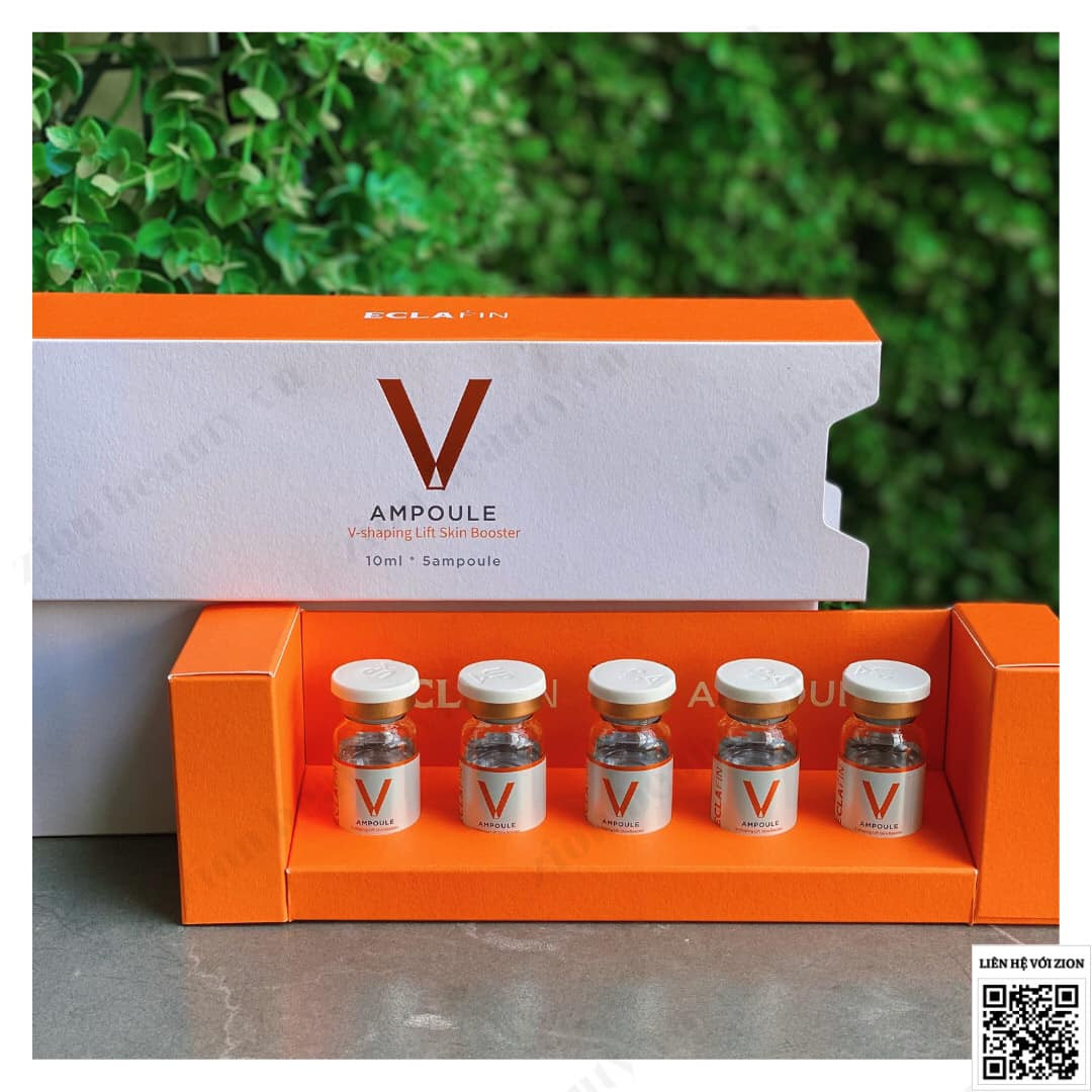 Đối với da chảy xệ, V ampoule là giải pháp hoàn hảo! Các thành phần chủ chốt như natri Deoxycholate, Carnitine, Caffeine, chiết xuất Aesculus Hippocastanum (Hạt dẻ ngựa), lá Betula Alba chiết xuất, chiết xuất rễ Ophiopogon Japonicus, chiết xuất quả óc chó giúp cải thiện độ đàn hồi cho da, nâng cơ và làm săn chắc da hiệu quả.