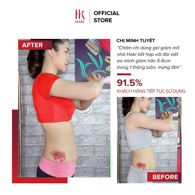 Kem tan mỡ Haki ✨ Thành phần chính: - Glycerin: dưỡng ẩm, giúp da mềm mại, dẻo dai hơn, chống nếp nhăn. - Tinh đâu vỏ quế: tăng cường sự lưu thông máu, giúp da trở lên săn chắc và đàn hồi. - Tinh dầu rễ cây gừng: thúc đẩy sự phân huỷ chất béo diễn ra nhanh chóng và gây ức chế hình thành mỡ mới - Chiết xuất sâm Brazil: giúp ngăn ngừa lão hoá, săn chắc vùng da như eo, bụng, mông…. ✨ Công dụng: Dưỡng ẩm da - Săn chắc vùng bụng, cánh tay, mông, đùi….. ✨ Cách sử dụng: Massage bằng kem tan mỡ Haki lên vùng da cần giảm khoảng 2-3 phút rồi dùng đai siết eo huỷ mỡ Haki. Sử dụng kem tan mỡ ngày 1-2 lần sáng - tối ✨ Ưu điểm: - Thành phần thiên nhiên, an toàn, lành tính - Không cần ăn kiêng hay chế độ ăn cắt giảm tinh bột - Không cần màng nilong quấn bụng sau khi thoa kem Sản phẩm khuyên dùng cho: nữ, 22-40 tuổi, người làm văn phòng, phụ nữ sau sinh, tập gym….