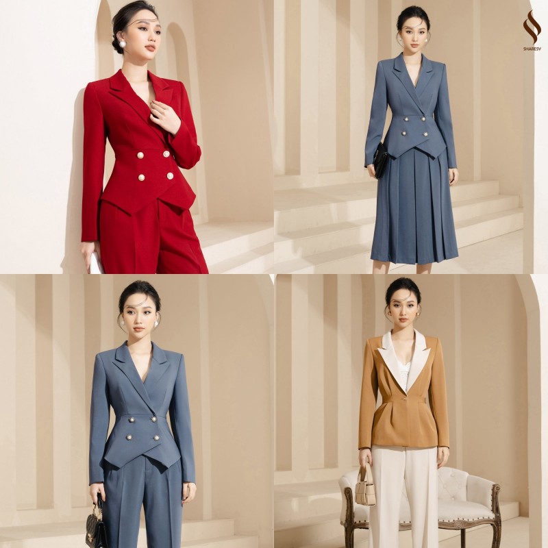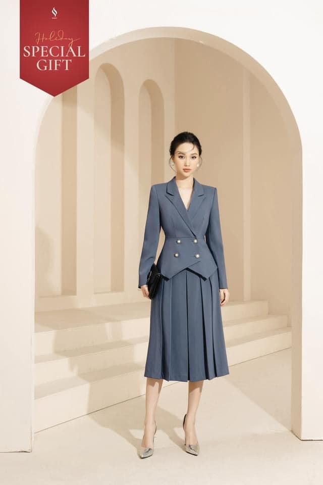 Để toát lên vẻ thành đạt và hiện đại, set gồm áo blazer 4 khuy có gấu V và tay dài sẽ cho mình cảm giác sang trọng và quyền lực. Cùng với dáng quần côn lịch sự sẽ tôn lên vẻ nghiêm chỉnh và tuy mang hơi hướng formal nhưng set đồ thiết kế lên form không bị cứng nhắc, vẫn mang cảm giác nữ tính và độc lập