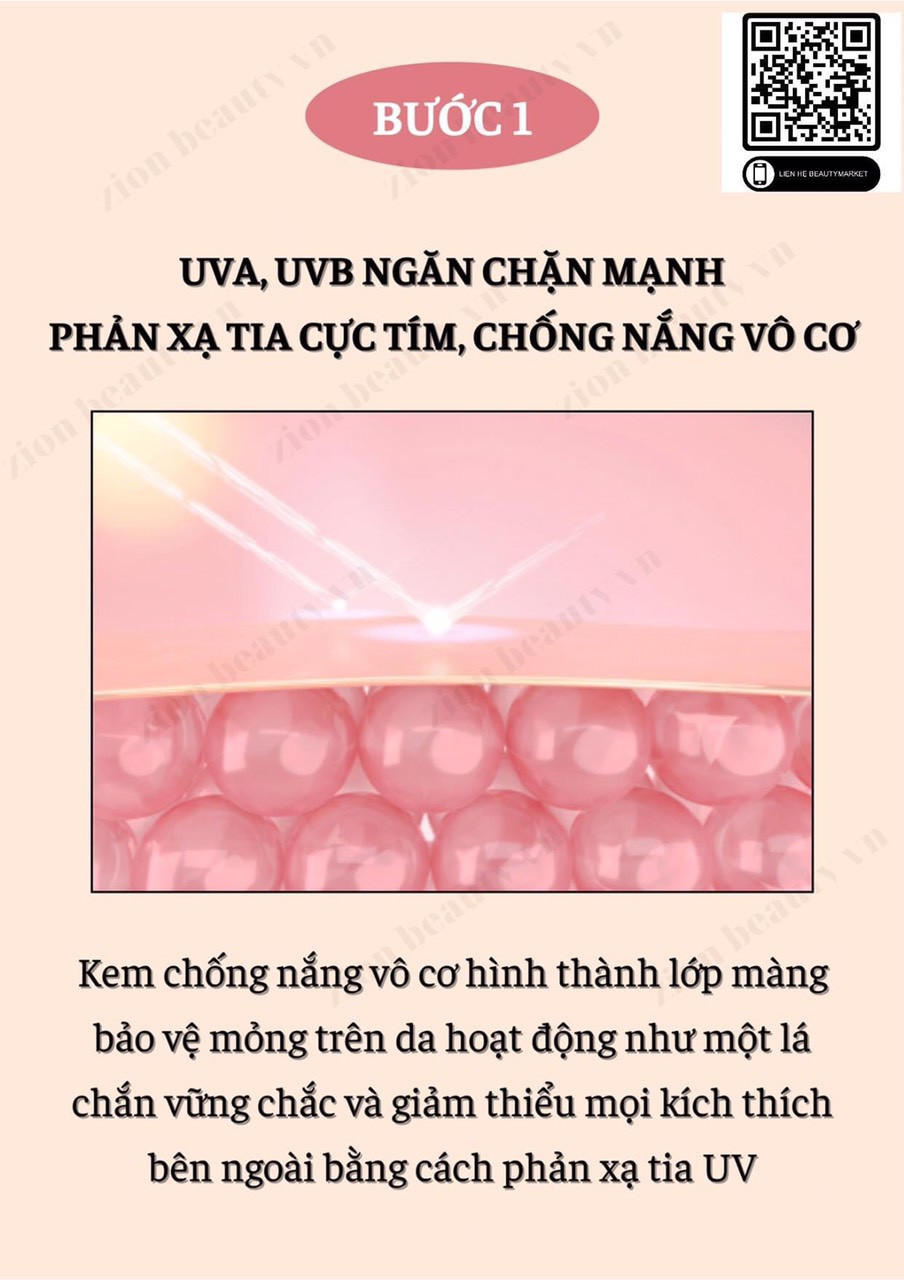 Kem chống nắng vô cơ hình thành lớp màng bảo vệ da hoạt động như một lá chắn và giảm thiểu mọi kích thích phản xạ bởi tia UV.