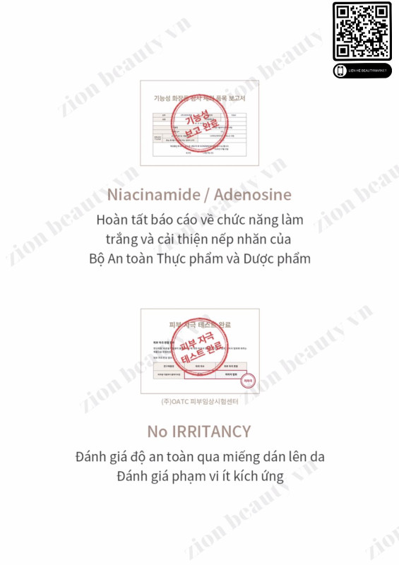 - Niacinamide và adenosine, không hương liệu và không gây kích ứng