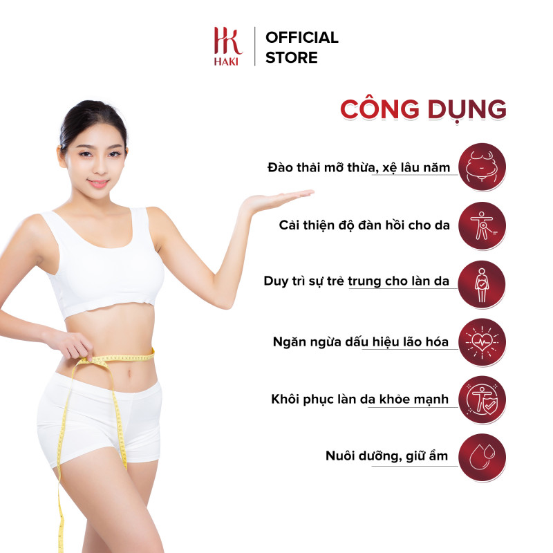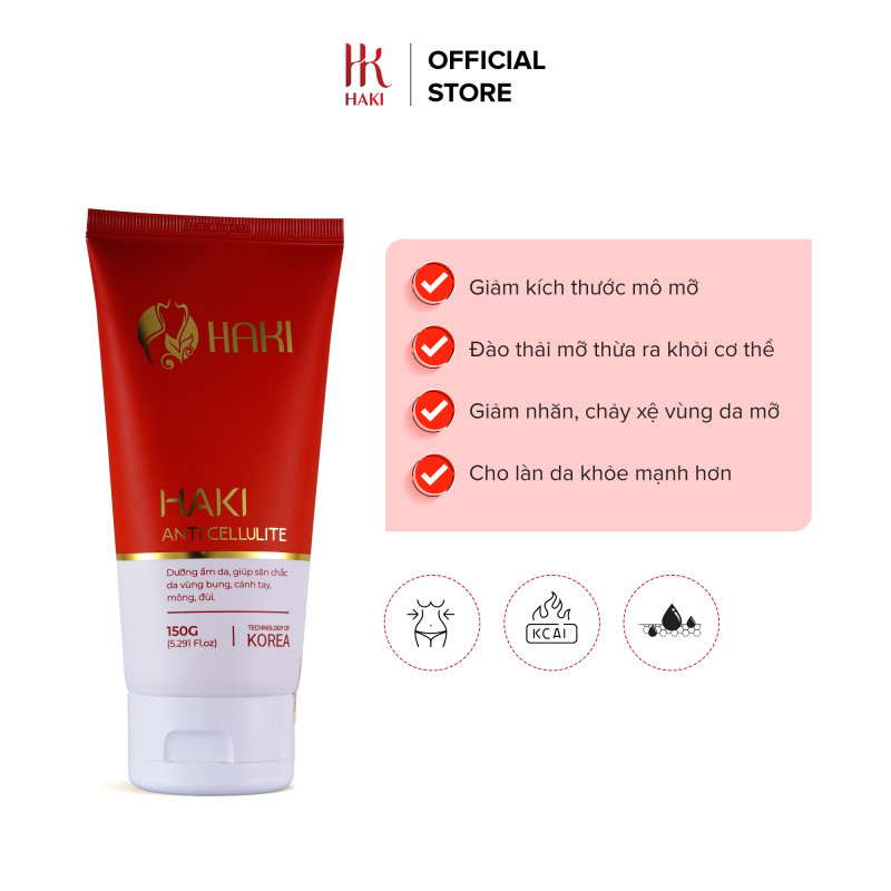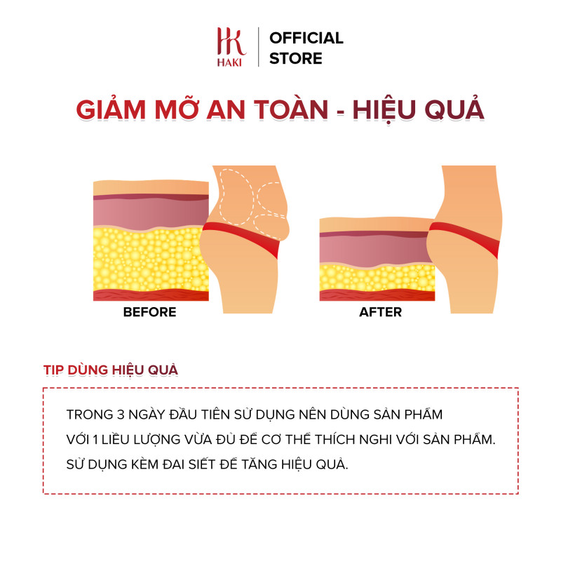 Kem tan mỡ Haki ✨ Thành phần chính: - Glycerin: dưỡng ẩm, giúp da mềm mại, dẻo dai hơn, chống nếp nhăn. - Tinh đâu vỏ quế: tăng cường sự lưu thông máu, giúp da trở lên săn chắc và đàn hồi. - Tinh dầu rễ cây gừng: thúc đẩy sự phân huỷ chất béo diễn ra nhanh chóng và gây ức chế hình thành mỡ mới - Chiết xuất sâm Brazil: giúp ngăn ngừa lão hoá, săn chắc vùng da như eo, bụng, mông…. ✨ Công dụng: Dưỡng ẩm da - Săn chắc vùng bụng, cánh tay, mông, đùi….. ✨ Cách sử dụng: Massage bằng kem tan mỡ Haki lên vùng da cần giảm khoảng 2-3 phút rồi dùng đai siết eo huỷ mỡ Haki. Sử dụng kem tan mỡ ngày 1-2 lần sáng - tối ✨ Ưu điểm: - Thành phần thiên nhiên, an toàn, lành tính - Không cần ăn kiêng hay chế độ ăn cắt giảm tinh bột - Không cần màng nilong quấn bụng sau khi thoa kem Sản phẩm khuyên dùng cho: nữ, 22-40 tuổi, người làm văn phòng, phụ nữ sau sinh, tập gym….