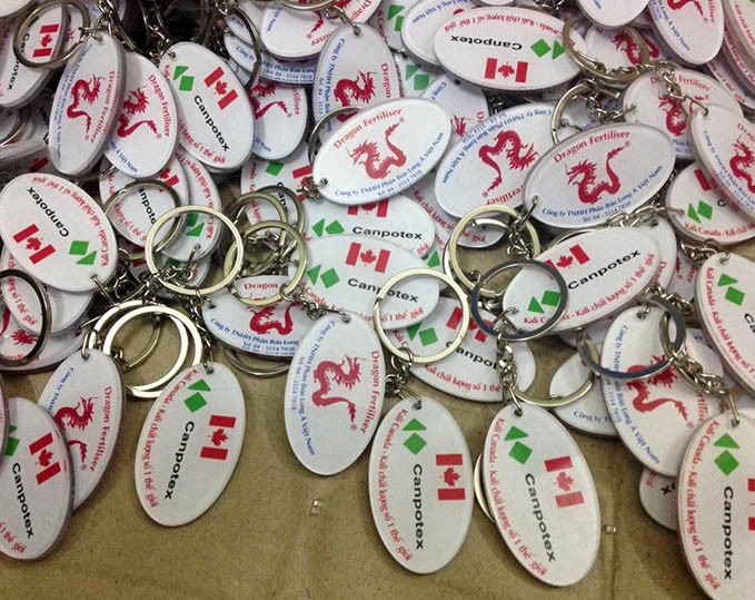 Móc khóa MicaTech thông dụng nhất với ưu điểm nhẹ trong như kính in được 2 mặt, độ dày 3 đến 4mm, cắt được theo mọi hình dáng kích thước. Làm móc khóa theo yêu cầu Hà Nội giá rẻ nhất, nhiều hình ảnh sản xuất tại xưởng và video móc khóa trong bài viết này cho các bạn tham khảo:
