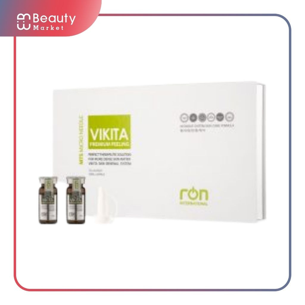 Trộn Serum Dưỡng Da VIKITA Premium Peeling vào nước rồi lắc đều lên. Sau đó bắt đầu tiến hành bóp sản phẩm lên vùng da cần vi kim và dùng 2 ngón áp út massage nhẹ nhàng theo chiều đi lên của cơ mặt. Đồng thời ấn dặm cho đến khi vùng da hơi ửng hồng lên thì ngừng lại. Tiếp đó chuyển sang vùng da khác và massage ấn dặm như vậy.