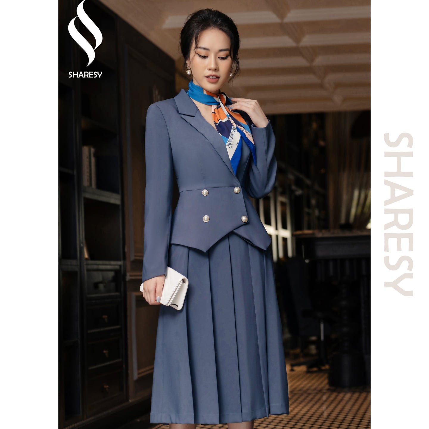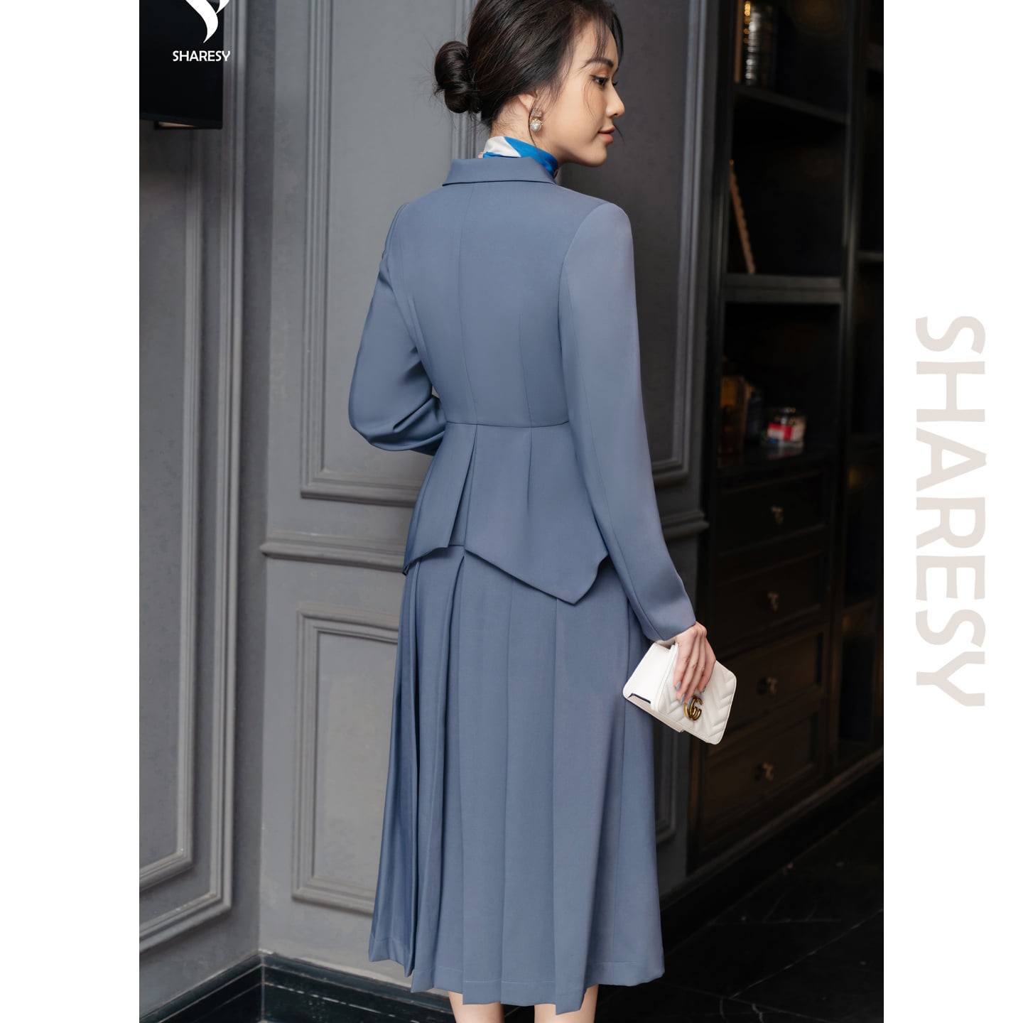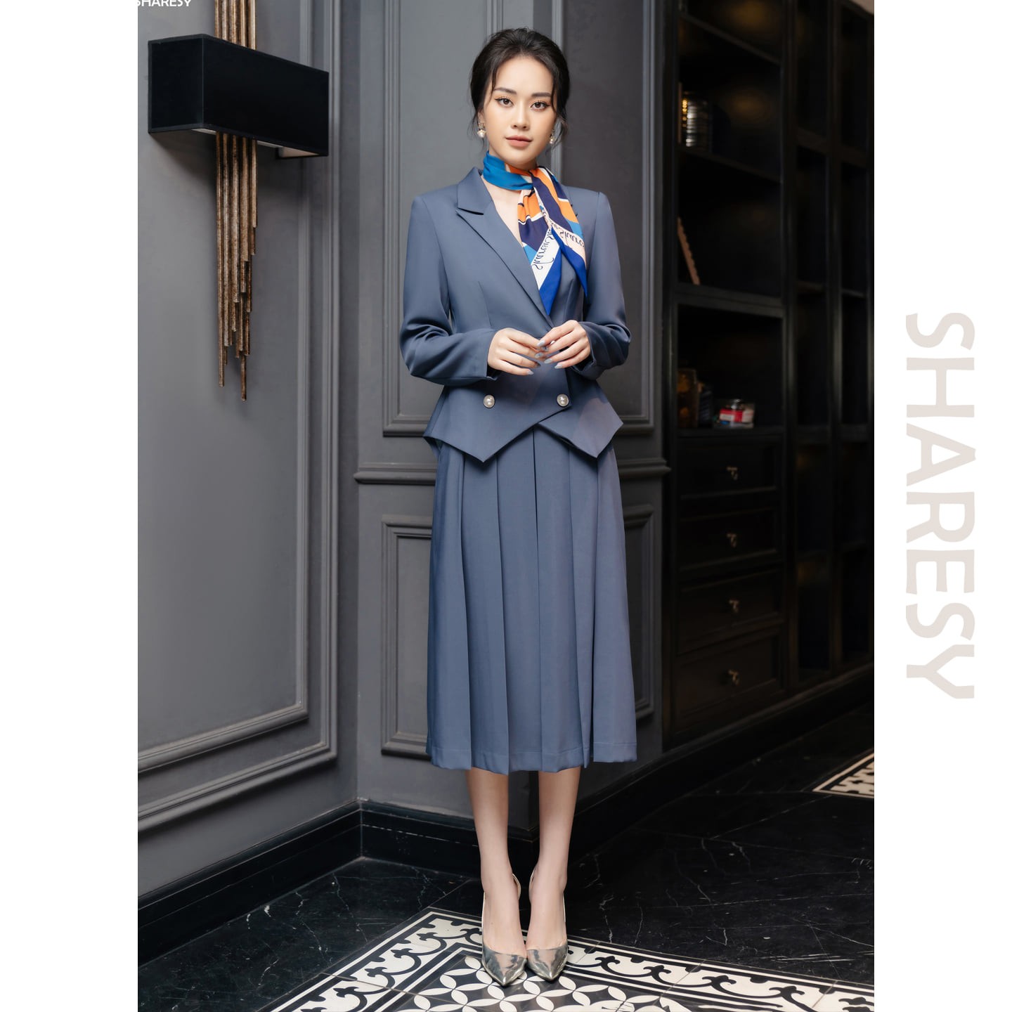 Để toát lên vẻ thành đạt và hiện đại, set gồm áo blazer 4 khuy có gấu V và tay dài sẽ cho mình cảm giác sang trọng và quyền lực. Cùng với dáng quần côn lịch sự sẽ tôn lên vẻ nghiêm chỉnh và tuy mang hơi hướng formal nhưng set đồ thiết kế lên form không bị cứng nhắc, vẫn mang cảm giác nữ tính và độc lập