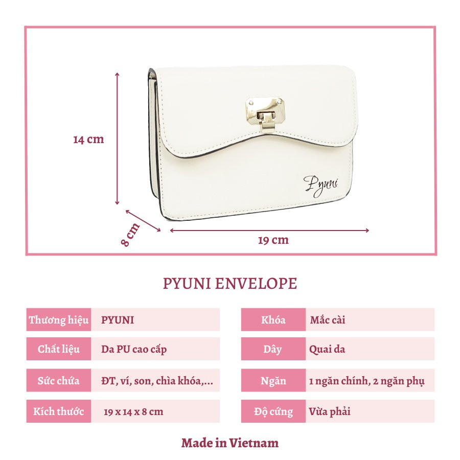 ? Túi đeo vai PYUNI Envelope quai đeo chéo bản to hoạ tiết, màu trắng