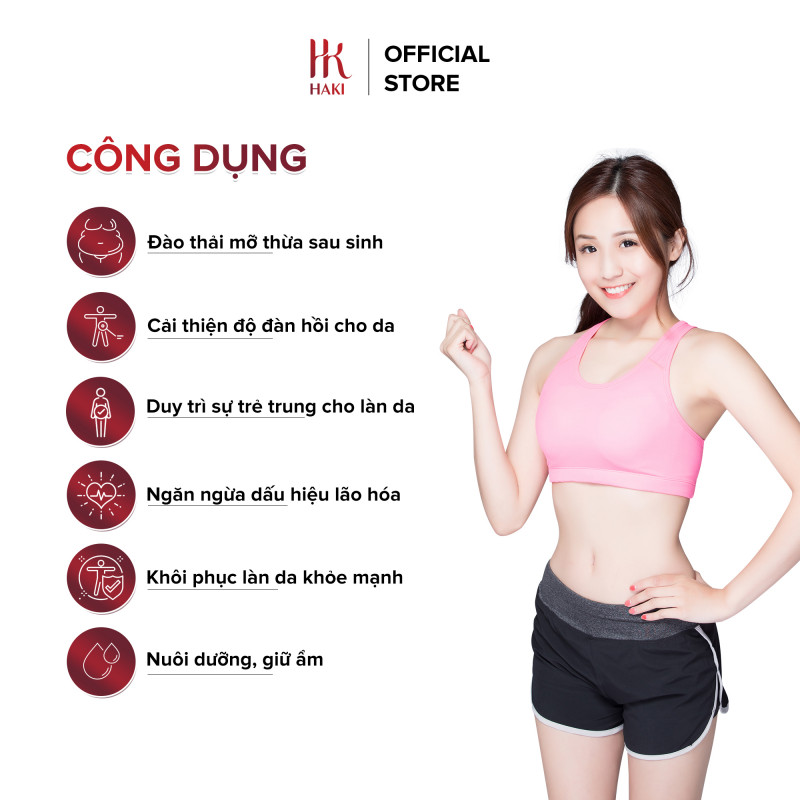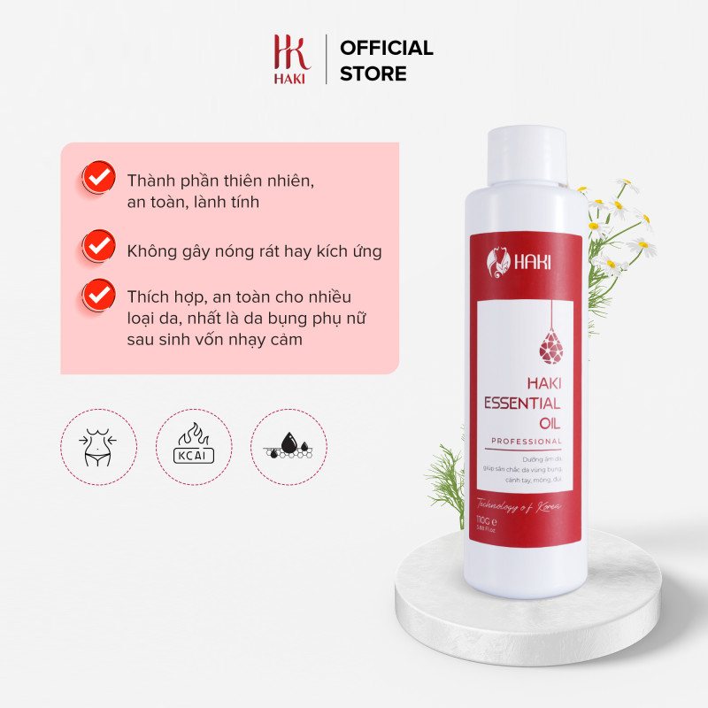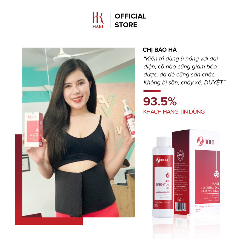 Tinh Chát Ủ Nòng Hủy Mỡ HAKI Haki Essential Oil 110g ✨ Công dụng: Dưỡng ẩm da, giúp săn chắc da vùng bụng, cánh tay, mông, đùi. ✨ Thành phần chính: - Hạt cây phỉ: có chất chống oxy hoá giúp ngăn ngừa lão hoá da, giảm các hiện tượng cháy nắng trên da, tăng sức cơ bắp. - Tinh dầu vỏ quế: có tính nóng cao, hoạt chất chính là Cinnamaldehyde có khả năng đánh bay lớp mỡ thừa dưới da hiệu quả. - Tinh dầu gừng: nhờ đặc tính làm ấm giúp đốt cháy calo hiệu quả, thúc đẩy sự phân huỷ chất béo và thải độc tố diễn ra nhanh chóng và gây ức chế hình thành mỡ mới. - Đại hồi: Chống oxy hoá giúp ngăn ngừa lão hoá da. - Quả bơ: giúp tiêu hao mỡ và calo trong cơ thể, các chất trong bơ có tác dụng chống lại tác hại của tia cực tím, bảo vệ làn da. ✨ Cách sử dụng hiệu quả: massage tinh dầu trong 3-5 phút, dùng kèm với nilong quấn bụng và đai quấn nóng Haki trong 30 phút ✨ Ưu điểm: - Thành phần thiên nhiên, an toàn, lành tính - Không gây nóng rát hay kích ứng - Thích hợp, an toàn cho nhiều loại da, nhất là da bụng phụ nữ sau sinh vốn nhạy cảm ✅ LƯU Ý: • Để nơi khô ráo, thoáng mát, tránh ánh nắng trực tiếp. • Để xa tầm tay trẻ em. • Tránh tiếp xúc vào mắt, nếu dính rửa lại bằng nước sạch, đậy nắp kín sau khi sử dụng. --------------------------------- ❌ CAM KẾT CỦA SHOP ❌ • 100% sản phẩm CHÍNH HÃNG của công ty. • Hàng mới đảm bảo chất lượng. Date sử dụng còn xa.Sản phẩm đã được đăng ký kiểm định an toàn. • 1 đổi 1 nếu sản phẩm bị lỗi, kém chất lượng từ nhà sản xuất.